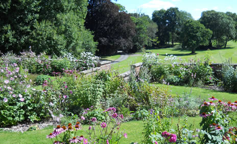 A fusion of a soft colour palate of whites, pinks, reds, lilacs and purples has been planted that is very easy on the eye. The borders are now well established and are a particular favourite for the wedding parties here during the summer months. A new border will be added by the summer of 2007 making the planting, so far, well over 5000 plants and counting!